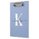 This simple, elegant light blue 12.5 x 9 clipboard with your first name in a trendy script font in navy blue typed over your first initial in a modern cap font in white is perfect for you. It's stylish and trendy and yet very classic. It will come in handy in so many situations. Perfect for work, home, school.