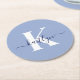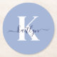 Modern Blue Script Monogram Round Paper Coaster