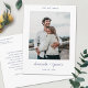 This simple, stylish modern photo wedding thank you thank you postcard template features your names in a lively handwriting script beneath your photo. The default colour for the text on both sides is an elegant medium dark shade of blue. You might choose to change the font, punctuation or colour used for various text elements of this design on the front and/or back. For example, you might choose to give a different colour to some or all of the text, or change the LOVE AND THANKS text above the photo to THANK YOU or something else. The background on both sides is set as transparent to let the colour of the paper simply serve as the base tone, but you can change this look by choosing a colour for the background on one or both sides. We've put some sample text on the back for you to replace with your own message as you see fit, but please don't feel restricted by this. If you prefer to delete our sample text entirely and keep the back message part of the card totally blank so that you can write a handwritten note on each card instead, you can do that. Or you might want to replace our text with your own message of gratitude and your own closing and then hand sign your names when you receive the cards. You can also change the font and you might change the case from the all upper case look we added. The default paper type, matte, has a soft warmth to it and resists smudging, so it's a great choice for writing your own message. You can edit this and choose semi-gloss instead. Just please be sure in any event to delete our sample/placeholder text on both sides of the card, including the return address and text on the back as well as the text and photo on the front. Use the intuitive design tools, your favourite photo and your inspiration and make this chic wedding thank you postcard uniquely yours. And browse our wedding thank you collection for more simply elegant modern wedding thank you card designs in various formats!