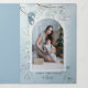 Modern Blue Sparkly Winter Botanical Arch Photo Tri-Fold Card