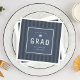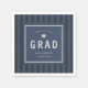 Graduation party napkins with a modern, sporty, blue striped background, ideal for athletes.