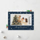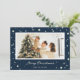 Modern custom blue photo Christmas card featuring stars on a dark blue background. Easily personalize this elegant blue photo Christmas card with your favourite image, a family name and text.
