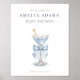Simple and elegant, this design features a delicate watercolor martini glass in soft dusty blue tones, finished with a silky coquette bow.