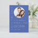 Sleek, modern save the date card in monotone shades of blue. Add your photo!