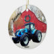 Modern Blue Tractor Christmas Ceramic Ornament