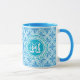 Modern Blue Trellis Print White Text Mug