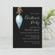Personalize this invitation template for a unique original art Christmas party invitation. I hand painted this simple blue green teal Christmas bauble. The golden botanical leaves suspend a vintage style holiday ornament on a black background. Modern elegant Merry Christmas script and family name are in pale blue. All the stylish chic text is editable. I hope you enjoy this lovingly made card.