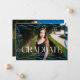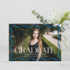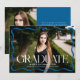 Celebrate your high school or college graduate with this stylish and modern graduation announcement, featuring a full-bleed horizontal photo framed by a sleek blue wavy border. "Graduate" is displayed in bold blue lettering adds a touch of elegance, while the graduate’s name, school, and class year provide a personalized detail. The back includes a vertical photo with space for your custom message, making it the perfect way to share this special achievement with family and friends.