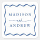 Modern Blue Wavy Frame Wedding Square Sticker