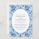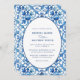 Modern Blue & White Mediterranean Watercolor Wedding Invitation. Gorgeous blue and white pattern inspired by mediterranean tiles and coastal blues on white, with an oval centre featuring text in beautiful blue ink with an elegant ampersand. Personalize with your bride and groom names, wedding date, time, wedding location. Excellent for destination weddings, coastal weddings, country weddings, and more. We invite you to visit our Zazzle store, Austen And Grace, for matching products and more. Please contact us if you require any assistance.