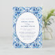 Modern Blue White Mediterranean Watercolor Wedding Invitation