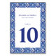 Modern Blue White Mediterranean Wedding Table Number