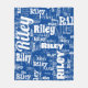 Modern Blue White Name Repeating Pattern Fleece Blanket