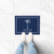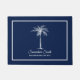 Add your own special touch to this simply elegant design featuring your family name or phrase and established date in white text and palm tree framed in a white border over a navy blue background.