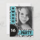 A very modern and stylish black and white zebra pattern design that works well with black and white photographs of your daughter celebrating her sweet sixteenth birthday! High contrast or selective colour photos would also look sharp! This design features bold electric blue colour bands, large block letter text and wild zebra print pattern to draw attention to the most important part of the page - your sweet 16er! Invite all of her girl friends to a special sweet 16 celebration with this pretty feminine, high fashion and trendy card. . It has several easy to customize text areas on the reverse side for your birthday girl's name and all sleepover or celebration party details, as well as rsvp contact information. Click the handy customize button to resize/reposition your photo if necessary and ensure that it covers the entire photo area.