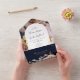 This modern blush floral | navy frame frame seal and send all in one invitation is perfect for your elegant boho luxury rose gold, sage green, blush pink wedding. Design features a gold foil frame or bouquet with rustic red peach spring peony, a classic whimsical watercolor succulent flower, greenery including fern and eucalyptus, with appearances of a vintage dusty rose and ivory butterfly. Other flowers include hydrangea, dahlia, and rose. The design is ideal for a classy, creative botanical fall, spring, summer, winter, retro bohemian wedding. Please feel free to contact us with any questions regarding the product's design; cheers!