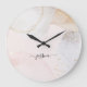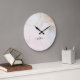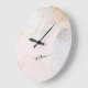 Modern wall clock with an abstract blush pink design and a hand lettered script. Personalize with your name.