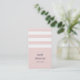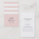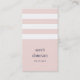 Modern and chic business card design in a unique vertical format features three wide white stripes on a pastel blush pink background, with your name and business name or title in an attractive mix of lowercase serif and modern caps typefaces. Add your full contact information to the back in rich navy blue. Suitable for any occupation; example shown for boutique businesses.
