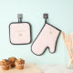 Modern Blush Pink Gold Script Monogram Oven Mitt & Pot Holder Set