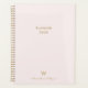 Modern Blush Pink Gold Script Monogram Planner. A modern, elegant monogram design with gold handwritten minimalist script typography and sans serif block typography on an elegant pale pastel blush pink background. The monogram and name can be easily personalized.