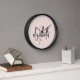 Decorate your home in style with this chic modern monogram blush pink, black and gold wall clock. Personalize the clock with your name or initials for a unique and meaningful touch. The stylish script font will add a modern and sophisticated flair to any wall, and is a great way to show off your personal style. Whether you hang it in your living room, kitchen, or office, this clock is sure to make a lasting impression.