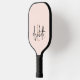 Show off your modern style with this unique black, blush pink and gold monogrammed pickleball paddle. Personalize it with your name in script for a one-of-a-kind accessory that's sure to make you stand out on the court. Add some style to your game with this personalized monogrammed pickleball paddle.