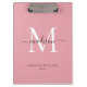 Modern Blush Pink Monogram Stylish Script Name Clipboard