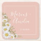 Modern Blush & White Daisies Wedding Square Paper Coaster