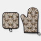 Modern Bohemian Moth Wildflowers Abstract Pattern Oven Mitt & Pot Holder Set