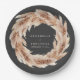 Modern bohemian natural pampas grass wedding day party plates. Stunning elegant script text and on trend botanical foliage. On trend black backer colour.