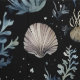 Elegant modern ocean wallpaper pattern featuring coral and shells.