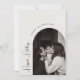 Celebrate the joy of the season with this modern boho arch green happiest holidays photo holiday card. The unique and chic editable script creates a touch of charm and individuality. Its simple, elegant black-and-white design, featuring a classic bohemian arch frame, evokes a whimsical winter ambiance. The minimal and delicate festive font adds creativity and charm. With a clean and basic neutral layout, this greeting captures the essence of December in style and grace.