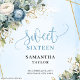 Most trending celebration theme this year combines dusty blue, ivory florals, and soft eucalyptus greenery! This elegant Sweet Sixteen ring binder is the perfect keepsake for organizing your memories, photos, or event details. Designed in a delicate watercolor style, the mix of powder blue flowers, ivory blooms, and muted green leaves creates a dreamy boho-chic look that’s both modern and timeless. Ideal for a sweet sixteen, 26th birthday, or milestone celebration, it adds a touch of sophistication and romance to your event collection. Customize names, dates, and text to create a one-of-a-kind binder that reflects your unique style — a stunning keepsake that’s as special as your day!