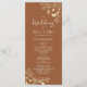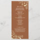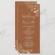 Modern boho, elegant, floral, burnt orange terracotta wedding program, with gold wildflowers lace and handwritten script.