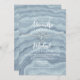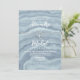 Simple, elegant minimal modern boho dusty blue wedding invitation with silver rope heart.
