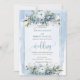 Modern Boho Dusty Blue White Silver Roses Wedding Invitation
