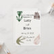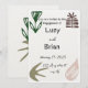 Modern minimalist engagement party invitation with abstract palm leaf design.