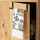 A boho inspired kitchen towel with a hand drawn kitchen shelf illustration perfect for modern farmhouse living. Designed in a pastel yellow, grey, and green colour palette, this unique home decor accessory will be a stunning accent piece for kitchen, living and dining room and make a beautiful gift for her who loves cooking.