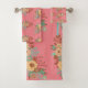 Modern Boho Floral Pink Bath Towels Set Throw,Fleece & Sherpa Blankets, Modern Boho Floral Pink Bath Towels Set Throw, Fleece & Sherpa Blankets