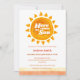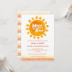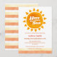 Cute simple minimalist " here comes the son" baby shower invitation, design feature with watercolor burnt orange sun and sunshine decor with yellow and orange watercolor stripes feel like the sand beach desert. Perfect for baby boy baby shower sunshine theme. You can customize text and colour.