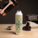 The balanced vertical composition wraps beautifully around the bottle, creating a statement piece that feels artistic and elevated.