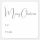 Celebrate the joy of the season with this modern boho Merry Christmas to from square sticker. The unique and chic editable script creates a touch of charm and individuality. Its simple, elegant black-and-white design, featuring a classic bohemian arch frame, evokes a whimsical winter ambiance. The minimal and delicate festive font adds creativity and charm. With a clean and basic neutral layout, this greeting captures the essence of December in style and grace.
