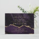 Modern stylish dark wedding card Purple with gold dust on with a gold ink pour effect (the gold is a digital effect, not real foil!) and modern calligraphy. Classy and elegant, simple and modern invitation. Gold ink pour effect (the gold is a digital effect, not real foil!) and modern calligraphy.