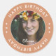 Modern Boho Simple Elegant Happy Birthday Photo Classic Round Sticker