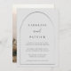 Celebrate your union with a strikingly modern wedding invitation that combines minimalist design with personalized flair. Our invitation features a timeless typography style showcasing your names in classic lettering, complemented by contemporary handwritten script accents. A delicate arch illustration adds a touch of sophistication to the design.