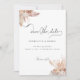 An elegant modern boho floral design with a whimsical modern Save The Date script makes the ideal wedding announcement to family and friends. Easily customize with your personal details of choice. See the matching All In One wedding invitations with RSVP cards attached, in our collection above.
