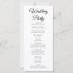 The front of the program features the couple's names, wedding date, city and state, and the ceremony order, while the back lists the wedding party. The main text is presented in a simple black block font, with the words "Welcome," "Ceremony," and "Wedding Party" in a pretty black modern script font, adding a touch of sophistication and elegance to the design. The couple's names are prominently displayed in a bold black simple font with letter spacing, making them stand out beautifully.