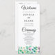 The program features a simple black block font for the main text, ensuring easy readability and a classic touch. However, the words "Welcome," "Ceremony," and "Wedding Party" are in a beautiful black modern script font, adding a touch of elegance and sophistication to the design. Finally, the couple's names are prominently displayed in a bold black simple font with letter spacing, making them stand out in a personalized and memorable way.
