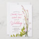 Announce your special day with our elegant Wildflower Wedding Invitation, featuring a delicate original photo of wildflowers and lush green leaves set against a crisp white background. The invitation's text is beautifully displayed in a mix of stylish pink script and classic serif fonts, adding a touch of sophistication and romance. A unique feature of this invitation is the photo of the couple on the back, framed in a graceful arch shape, adding a personal and memorable touch. This combination of natural wildflower photo and refined typography makes this invitation a perfect choice for a boho nature-inspired, elegant wedding celebration.