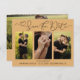 Modern 4 photos of couple Wedding Save the Date announcement card template with website information and cute heart in script font in boho yellow.